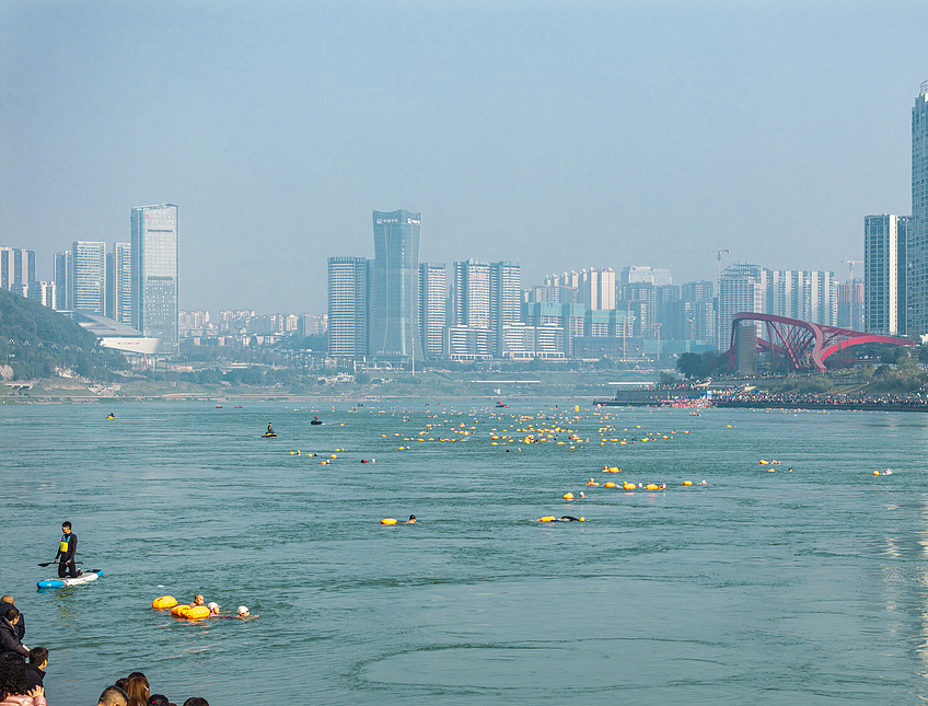 2.个人赛选手从起点出发,游到终点上岸点上岸,跑步通过终点拱门后,即完成个人赛。